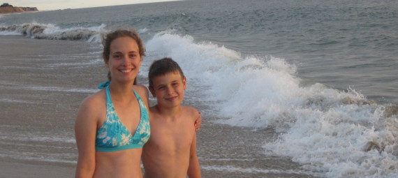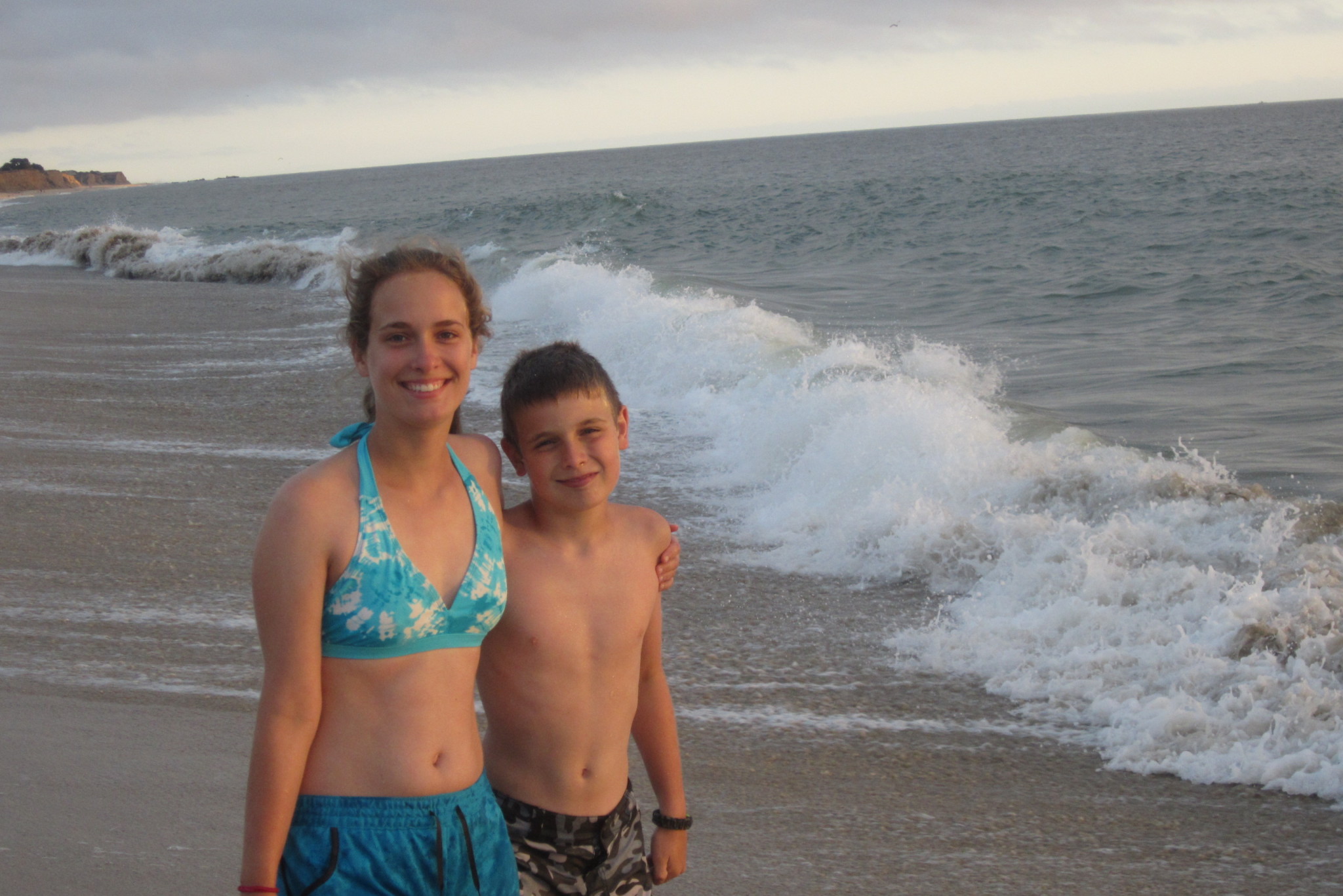 After we packed up our tents and had breakfast Daddy and Grace went to a four hour art class and we went to the lodge, used some wifi, and had a brilliant lunch. Then we drove to our new campground in California. We set up our tents, then changed into swim clothes, and went to the ocean. Maddie and I buried our feet in the sand and played in the waves.