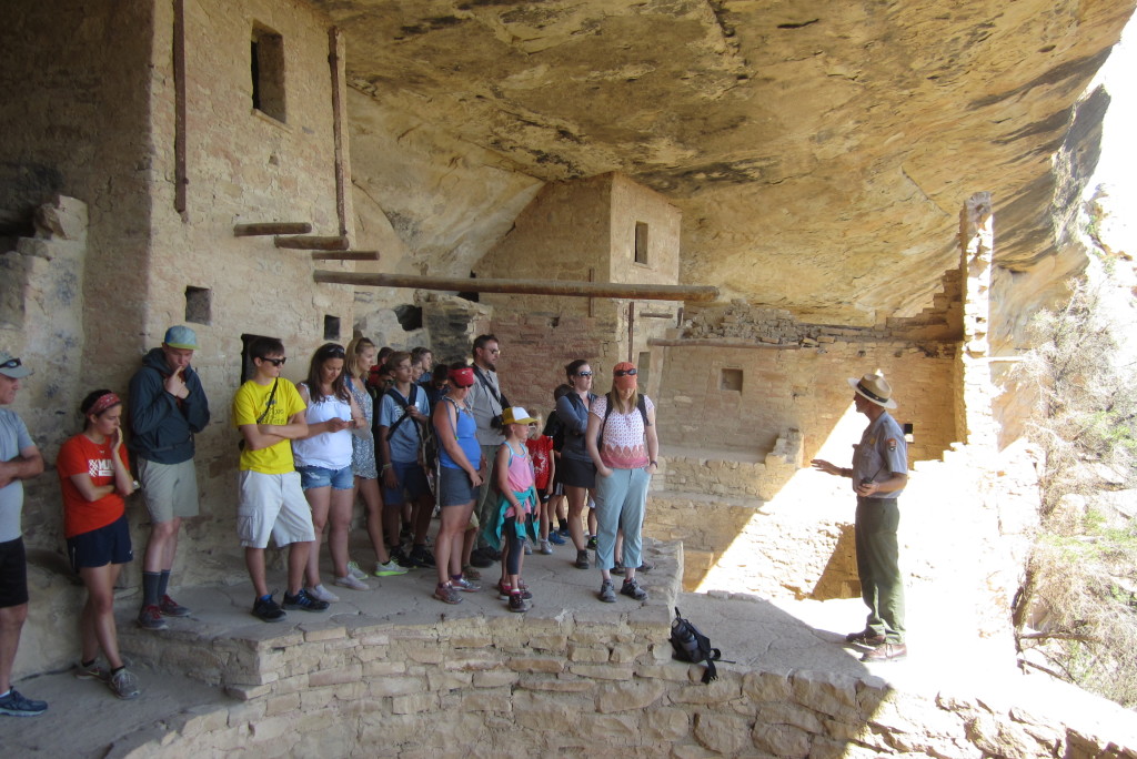 There were two tours that we wanted to go on, but we needed to get to the park early to get tickets. So we got into the car and drove to the Mesa Verde Visitor Center. We got tickets for the Balcony House tour, which was smaller than the Cliff Palace tour. But we actually got to go inside the structures, unlike the other option.