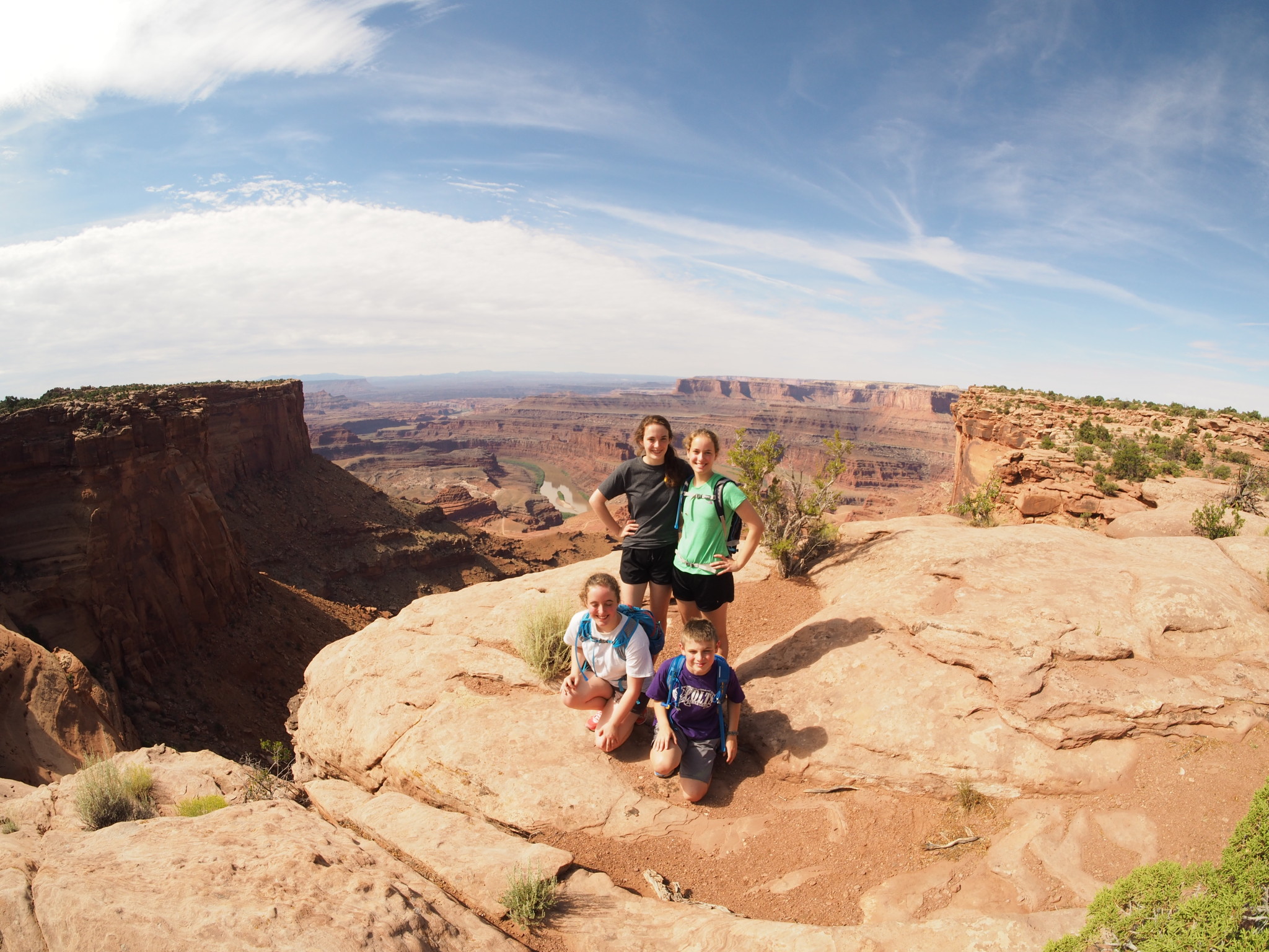 We started the day at Dead Horse Point State Park. You might think, “Ohh a state park –It can’t be on the level of the national parks …” but you would be very wrong. Heather and I visited here a few years back and the hiking and views from here are every bit as spectacular as the Grand Canyon. It abuts Canyonlands National Park and provided a fun hike and wonderful pictures. The heat was a bit rough though and several of us were tired after the hike.