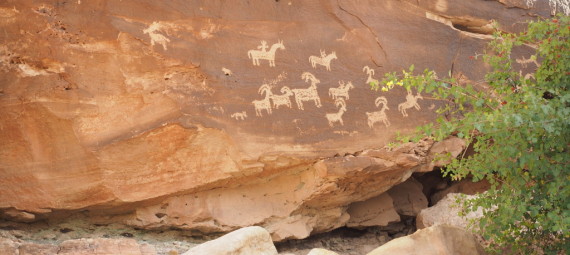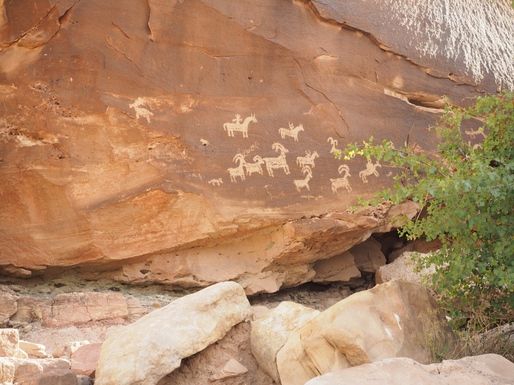 We went back to our spot on the other side and put on sunscreen, because by that time the sun was beating down relentlessly.So Grace finished taking pictures and we had someone else take another picture of us and then we set off back toward the parking lot. Grace, Noah, and Daddy stopped at Frame Arch and took pictures, while Claire, Mommy, and I kept going. We started playing 20 questions and Claire and Mommy guessed. I fell before they could finish guessing, and Claire went ahead. I sat for a minute because I twisted my ankle and didn’t know if I could walk, but I was fine. Mommy eventually figured out that it was Ray the firefly from Princess and the Frog. We met up with Grace and Daddy and Noah at an offshoot of the trail that led to some petroglyphs (pictures carved into rock).