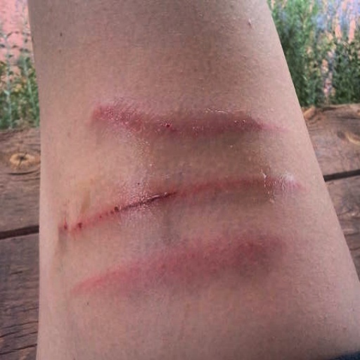 I forgot to mention how Noah loved the fact that his horse was known as “the farting horse” and Noah also did everything in his power to go in the water and splash Jasmine and me. Hilarious. Now I’ll get to my getting attacked by a tree. When Jasmine still felt the need to get me off she plowed straight into a bush/tree thing and I got two giant holes in my pants and 3 long scrapes on my legs. (Sorry this photo’s kinda gross.)
