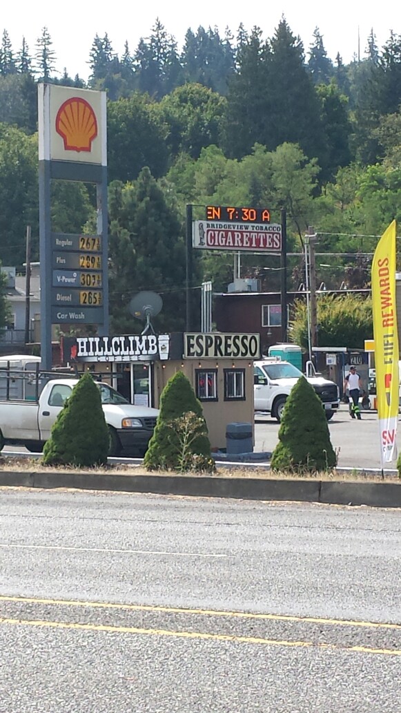 On a different note, it’s been fun noticing the differences between the east and west coasts. For example, Oregon has only Full Service gasoline. Also throughout Washington and Oregon we have noticed an incredible number of tiny coffee shops. Even the smallest towns would have two, three or four of these spread out in various parking lots throughout town.