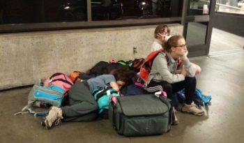 The alarm was set for 4:00 am!   The kids marveled at how lit up the  city was  and how many people were on the streets as we made our way toward the airport. Our kids have become expert travelers  over